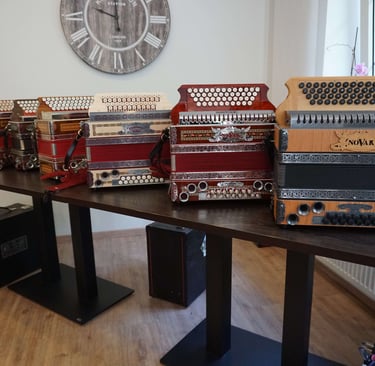 Die Steirische Harmonika gehört zu der Gruppe der diatonischen Akkordeons. Der Unterschied zu dem Akkordeon, an das man normalerweise denkt, dem chromatischen Akkordeon oder auch als Schifferklavier bekannt, ist einfach erklärt.